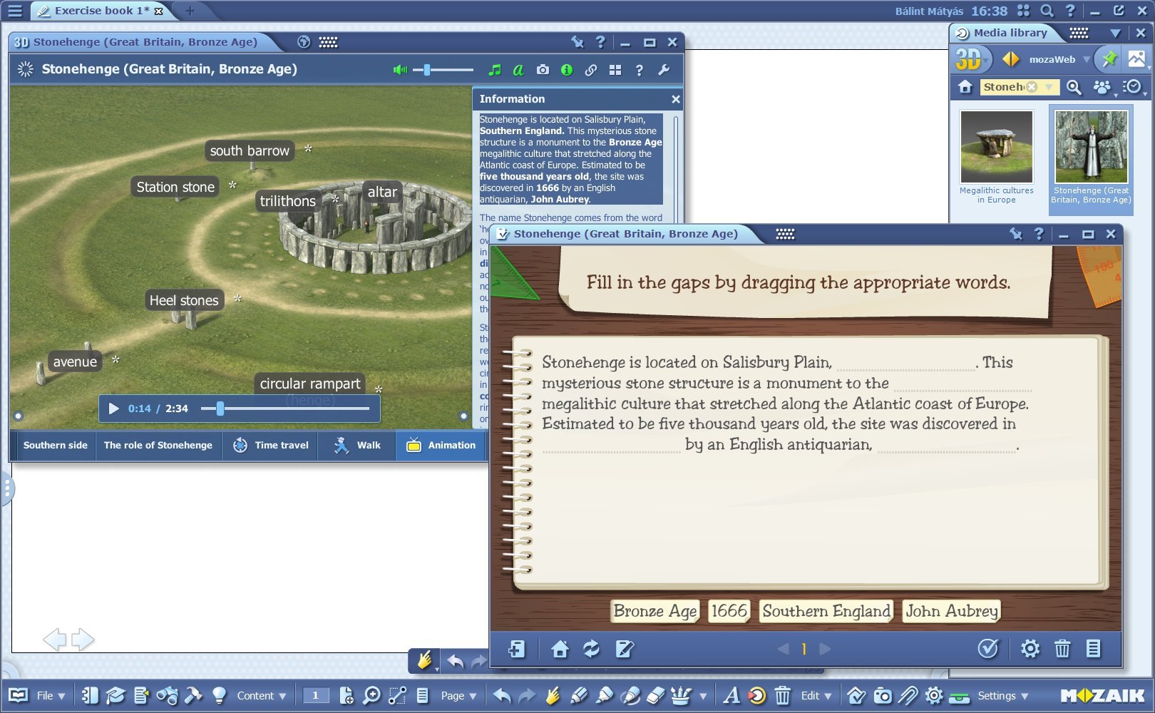We also have the option of choosing among the exciting and very detailed 3D scenes and showcasing them in the class. Discover the mysteries of Great Britain’s most well-known symbol, the Stonehenge! It's easy to raise the students’ interest with the help of these 3D scenes, resembling their favourite video games, and make them think about the topic. Then you can simply select some parts of the written text and go for the built-in gap-filling exercise, or create a new customized test with the Test editor tool. The narrated and labelled 3D scenes can play a huge role in bilingual education as well. In many countries there is more than one official language so the immediate necessity for students to learn more languages simultaneously is a valid concern. In addition, as a result of globalization, more and more parents choose to enroll their children at a dual language institution in order to open up more and better career opportunities at home or even abroad.