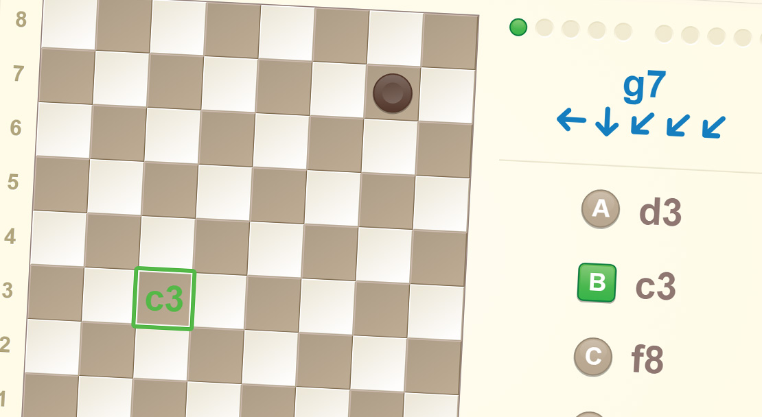Prikaži na koje polje šahovske ploče vodi određeni put.
